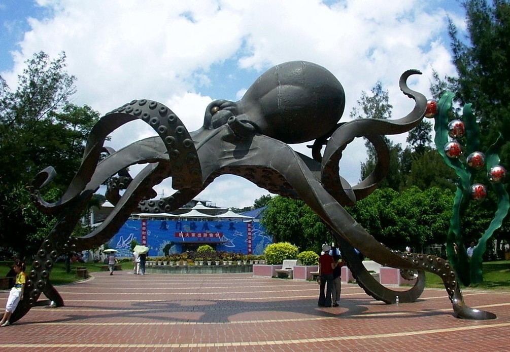 建成于1998年,占地17.5公頃,總建筑面積約6700平方米。其中包括:海底隧道、淡海水魚池、海洋底棲生物水塘、放映室、海洋展覽廳、特種紀念品商店和快餐廳等。館內(nèi)展示了海洋淡水魚350多種近萬尾。五彩繽紛的活珊瑚;瀕臨絕種的大海龜;難得一見的澳洲海龍、海馬;亞馬遜河的吃人魚、海象;印尼的巨鯊,石斑魚;中國南海的珊瑚礁魚類;名貴的淡水魚等,是目前中國最豐富多彩的水族館。