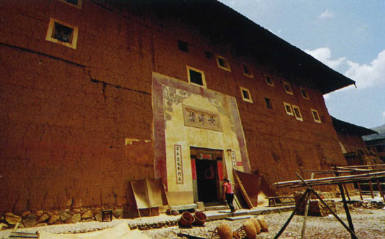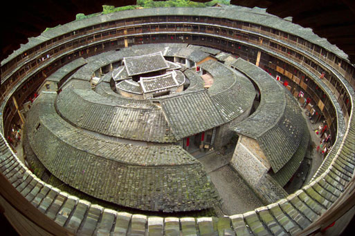 承啟樓是圈數(shù)最多的圓樓,4環(huán)樓屋外高內(nèi)低,環(huán)環(huán)相套。大門與廳、廳與左右側(cè)門有通道,圈與圈之間有巷道,樓中廊道回轉(zhuǎn),重門掩映,進(jìn)入樓內(nèi),就如進(jìn)入一個(gè)迷宮,令人莫辨東南西北。鼎盛時(shí)居住過80多戶600多人,全是同族人。樓中彌漫著濃郁的鄉(xiāng)村生活氣息,日本東京藝術(shù)大學(xué)美術(shù)教授茂木計(jì)一郎稱它是“家族之城”。承啟樓這種平等的聚居方式,是客家人聚族而居的範(fàn)例,它廳堂的一副對(duì)聯(lián)便是最好的說明: